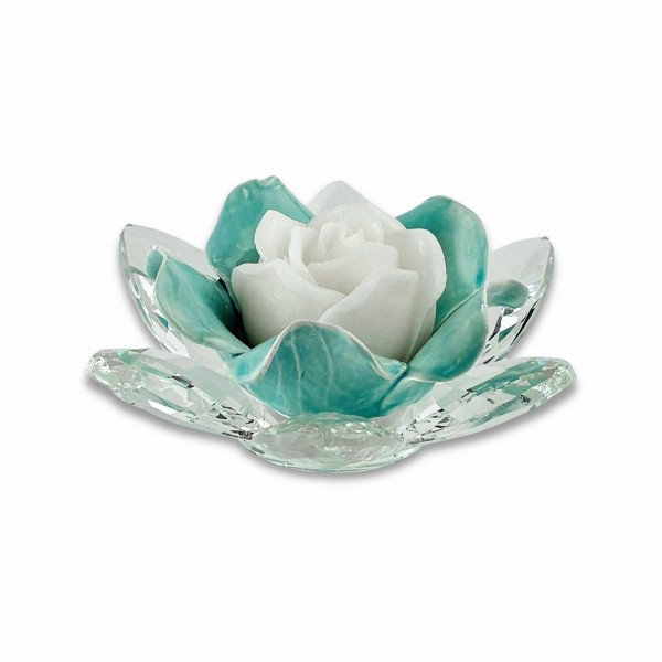 Camelia / P.candela grande cristallo e porcellana v.salvia-cera bianca