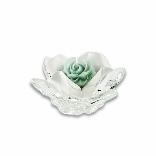 Camelia / P.candela piccolo cristallo e porcellana bianca-cera salvia