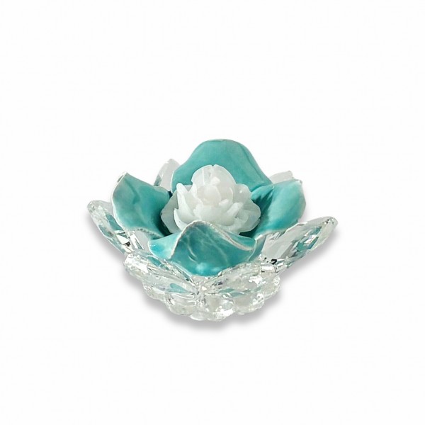 Camelia / P.candela piccolo cristallo e porcellana v.salvia-cera bianca