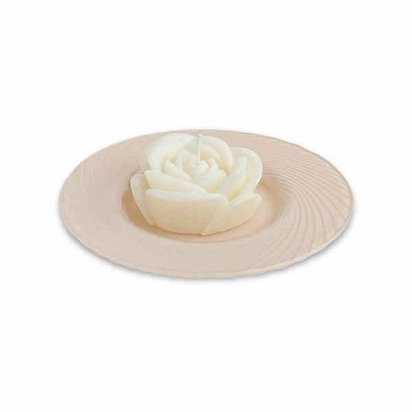 Karma / Piattino vetro beige con rosa cera bianca