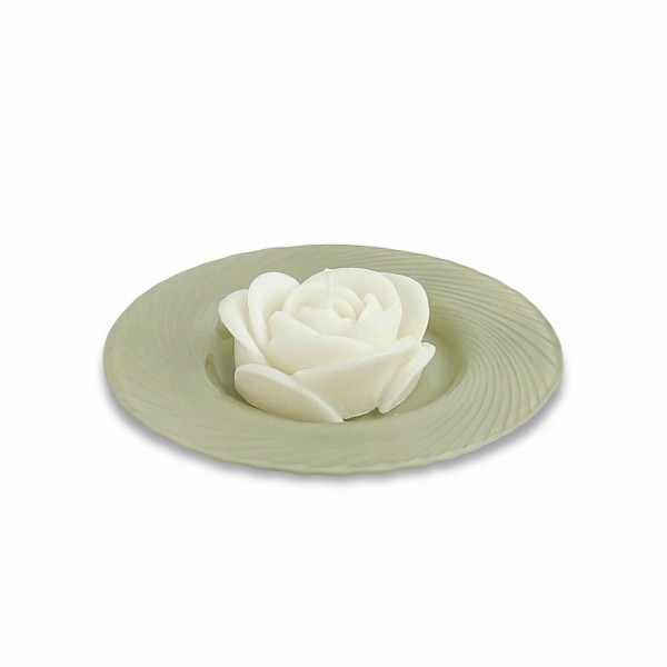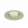 Karma / Piattino vetro verde salvia con rosa cera bianca