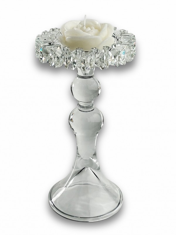 Diva / Candeliere vetro 4^ misura con cristalli e rosa cera di soia