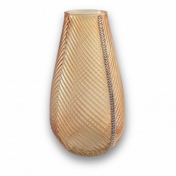 Praga / Vaso goccia piccolo vetro lustro ambra con fascia strass